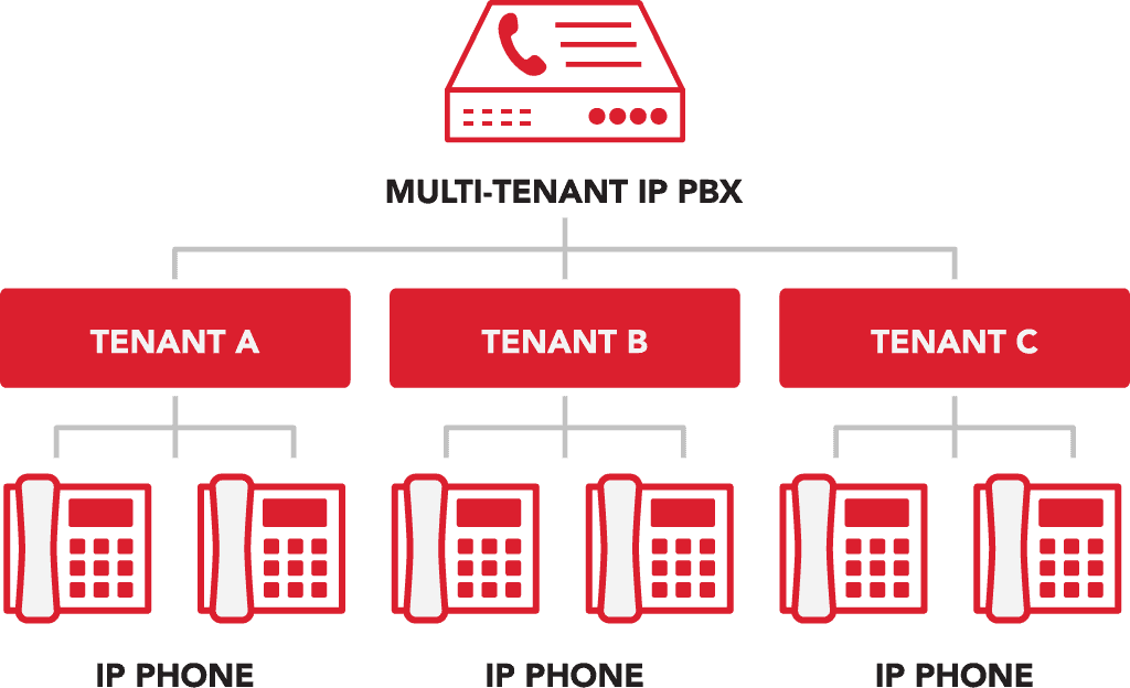 A multi-tenant IP PBX is a phone system architecture that allows multiple independent organisations (tenants) to share a single IP PBX platform, while keeping their data, configurations, and users completely separate. This model is ideal for service providers, co-working spaces, franchises, or companies with multiple subsidiaries.